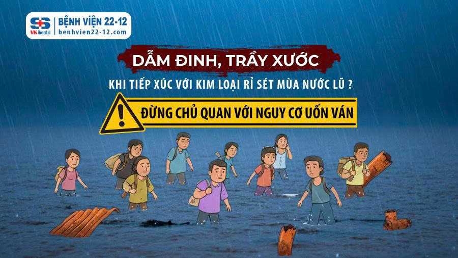 Trong những ngày lũ lụt, người dân thường phải di chuyển trong dòng nước chảy xiết, bùn đất và rác thải. Các tai nạn như dẫm phải đinh, bị vật sắc nhọn cứa, hay tiếp xúc với kim loại rỉ sét xảy ra rất phổ biến. Những vết thương tưởng chừng nhỏ lại tiềm ẩn nguy cơ uốn ván nguy hiểm có thể gây co cứng cơ, khó thở và đe dọa tính mạng nếu không được xử trí kịp thời.