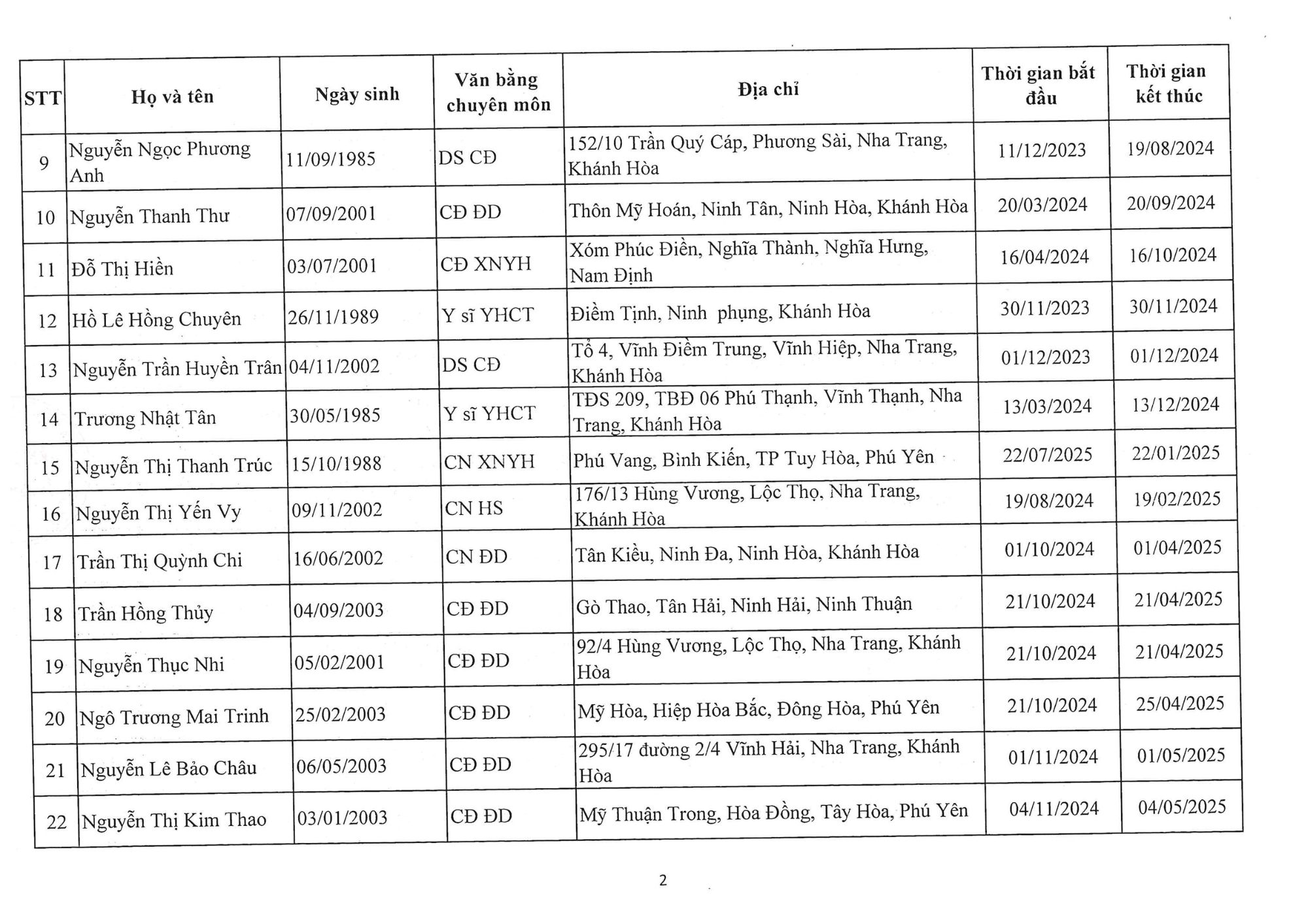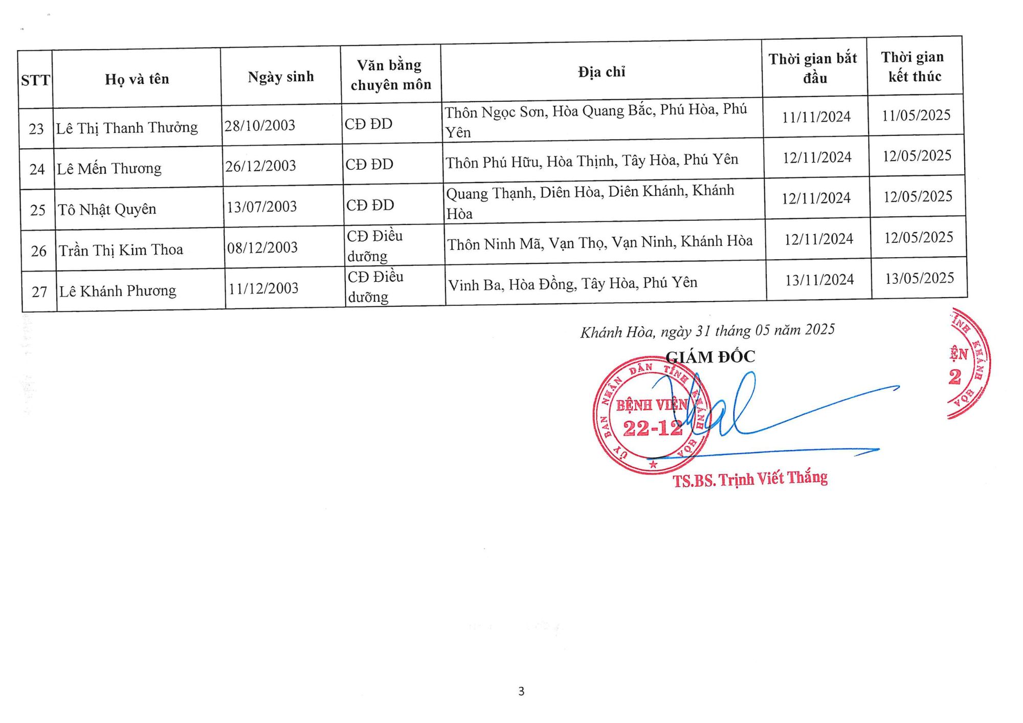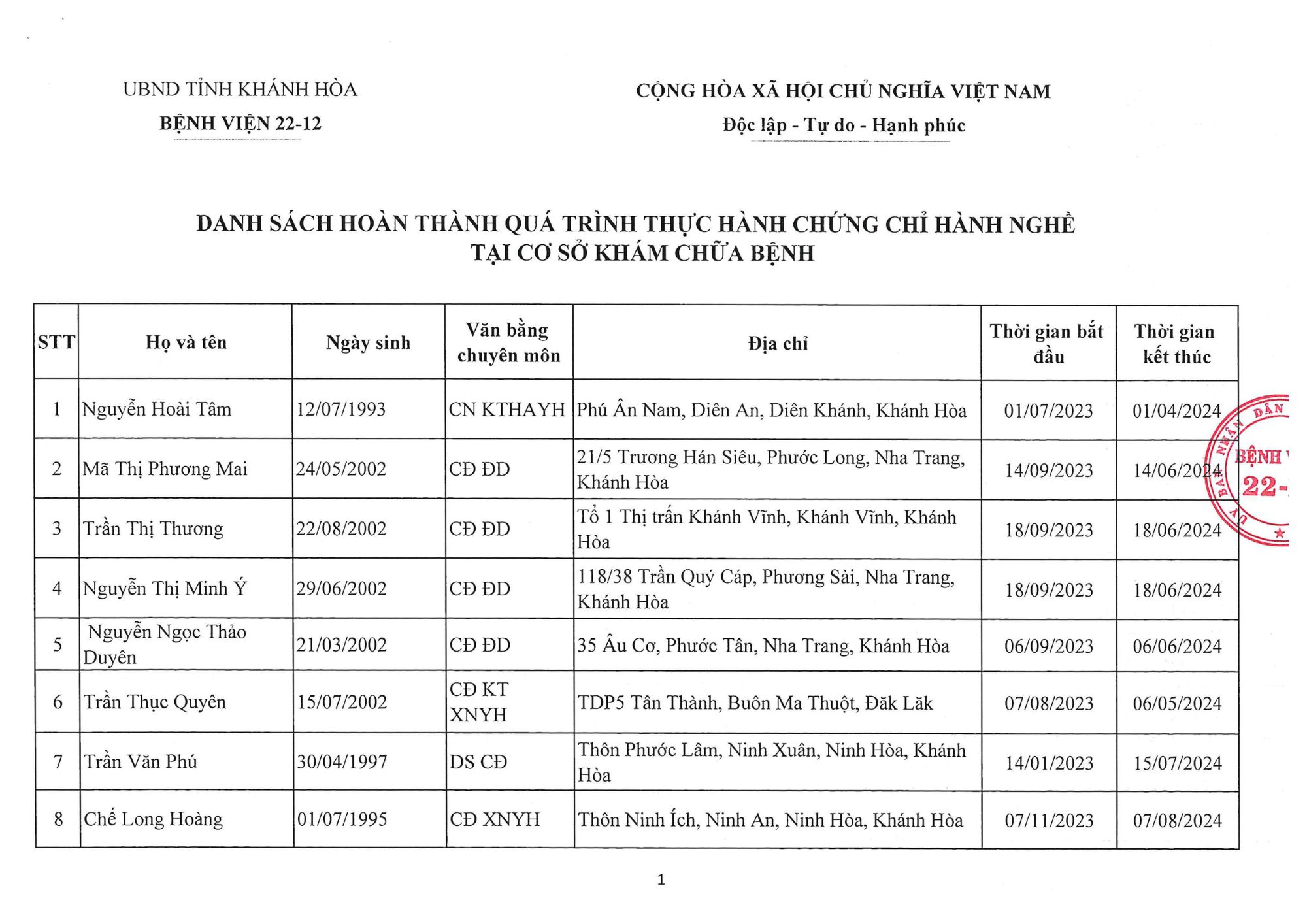 Danh sách người hoàn thành quá trình thực hành CCHN tháng 05/2025