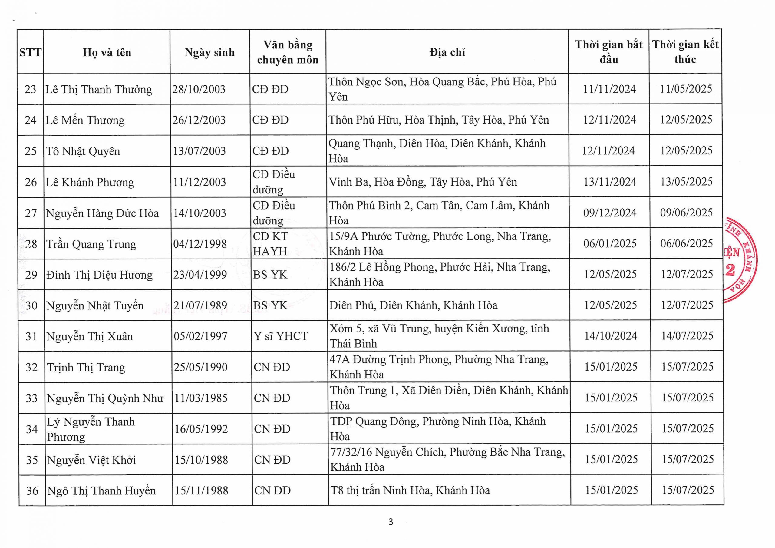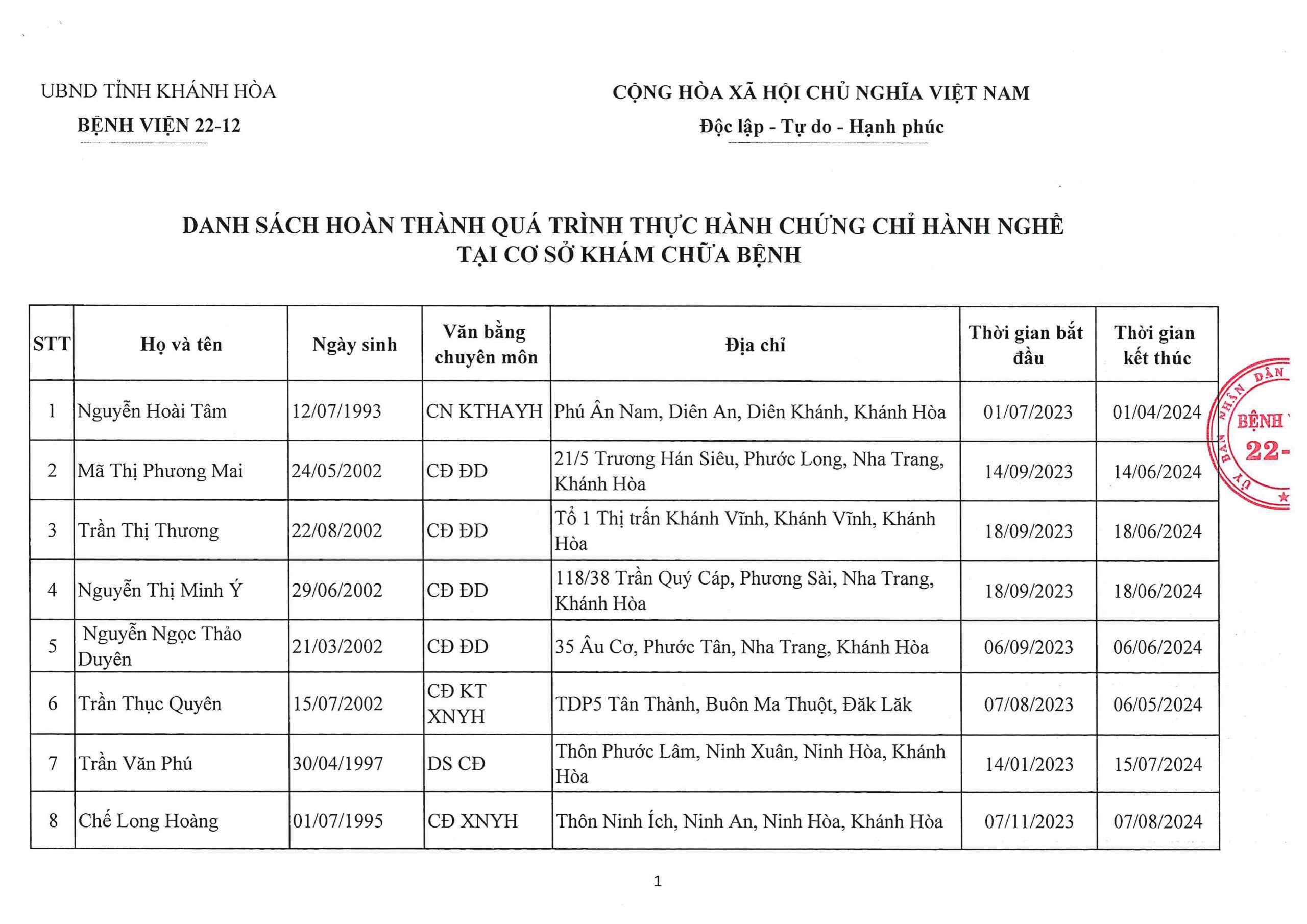Danh sách người hoàn thành quá trình thực hành CCHN tháng 07/2025