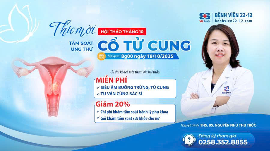 Tháng 10 – tháng tôn vinh phái đẹp, cũng là dịp tuyệt vời để chị em yêu thương và lắng nghe cơ thể mình! Nhằm giúp chị em nâng cao nhận thức và chủ động chăm sóc sức khỏe sinh sản, Bệnh viện 22-12 kính mời quý chị em tham dự Hội thảo “TẦM SOÁT UNG THƯ CỔ TỬ CUNG”.