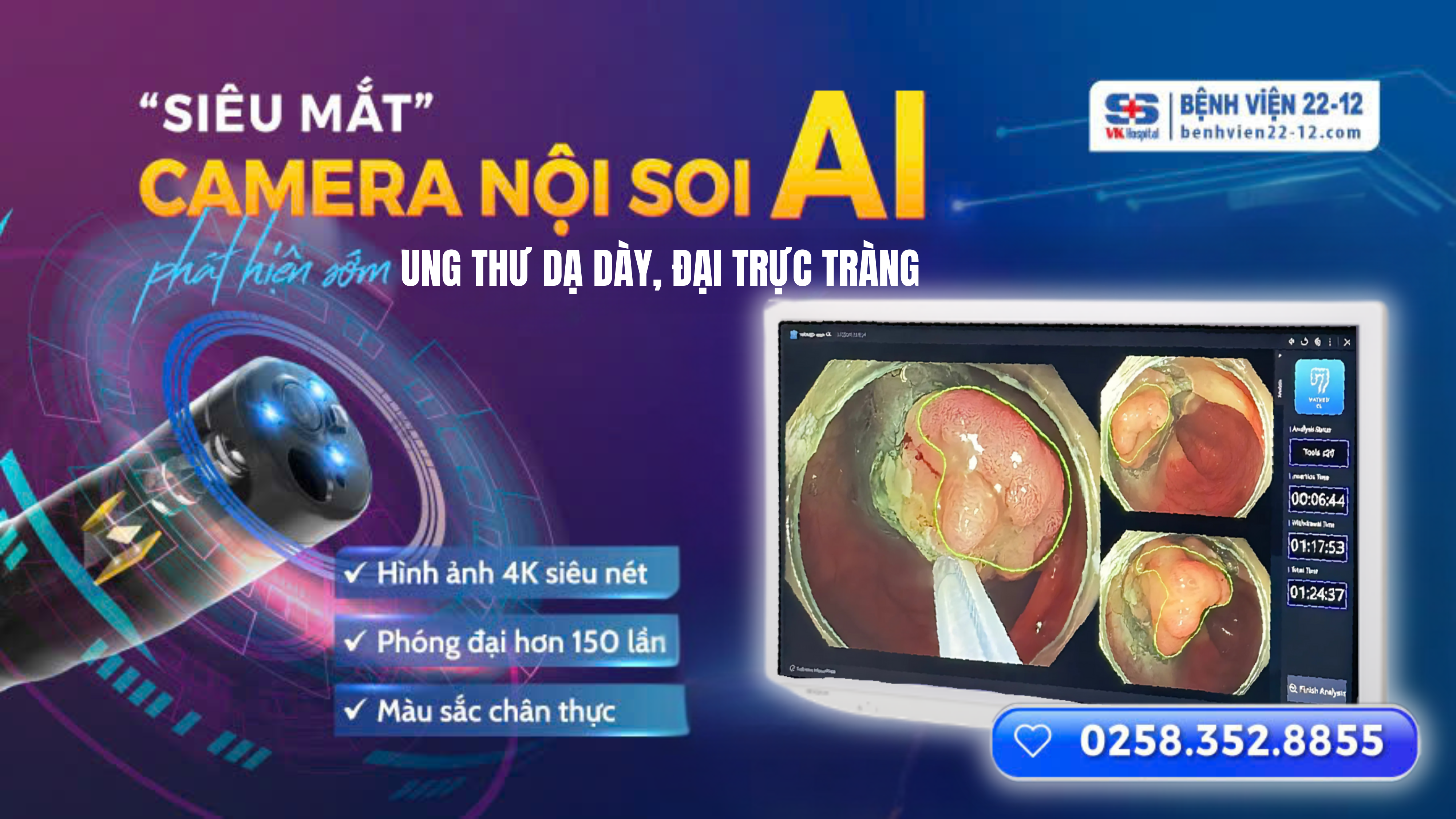 BSCKII. Cao Nguyên Đính – Phó Giám đốc kiêm Trưởng khoa nội soi tiêu hoá Bệnh viện 22-12 cho biết: “Hệ thống máy nội soi Olympus Evis X1 CV1500 được tích hợp trí tuệ nhân tạo AI tự động cảnh báo polyp hoặc ung thư ngay khi nội soi, hạn chế bỏ sót thương tổn dù rất nhỏ. Cùng với công nghệ 4K sắc nét, phóng đại hình ảnh lên gấp hàng trăm lần, giúp truy tìm những tổn thương siêu nhỏ mà mắt thường không thể nhìn thấy; nguồn ánh sáng đặc biệt giúp phát hiện sớm polyp, ung thư, viêm loét đường tiêu hóa…”