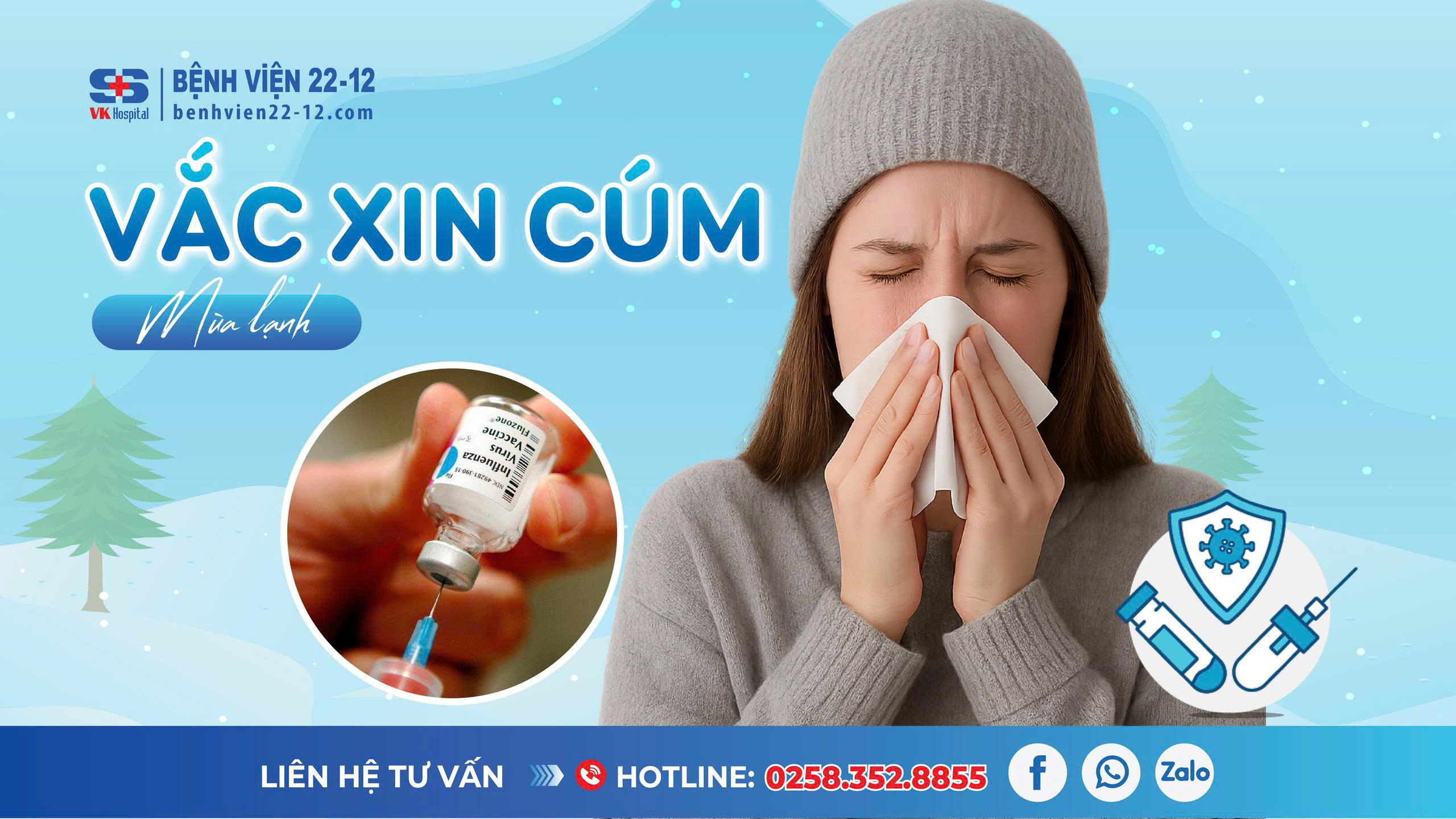 Tại Trung tâm Tiêm chủng – Bệnh viện 22-12, dịch vụ tiêm vắc xin cúm mùa lạnh được triển khai thường xuyên, với nguồn vắc xin chính hãng, bảo quản đúng quy trình và đội ngũ bác sĩ, điều dưỡng giàu kinh nghiệm. Người dân khi đến tiêm không chỉ được khám sàng lọc kỹ lưỡng, tư vấn cá nhân hóa theo độ tuổi và tình trạng sức khỏe, mà còn được theo dõi sau tiêm an toàn. Với không gian hiện đại, quy trình nhanh gọn, Trung tâm tiêm chủng BV22-12 mang đến sự an tâm cho cộng đồng, đặc biệt trong giai đoạn mùa lạnh khi nguy cơ bùng phát dịch cúm gia tăng.